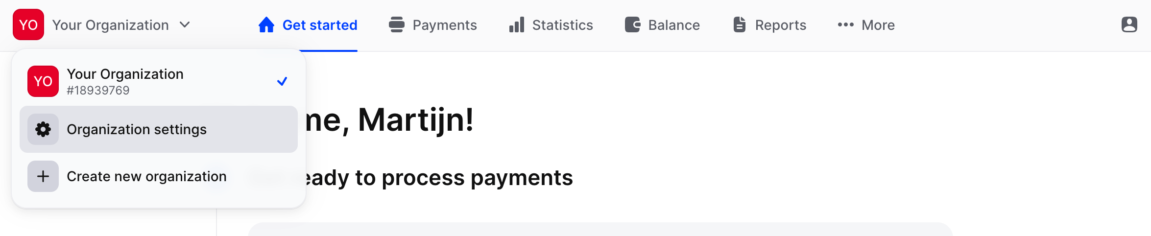 <figure><img src="https://norrnext.com/images/docs/mollie-dashboard2-min.png" alt=""><figcaption><p>Go to Organization settings</p></figcaption></figure>