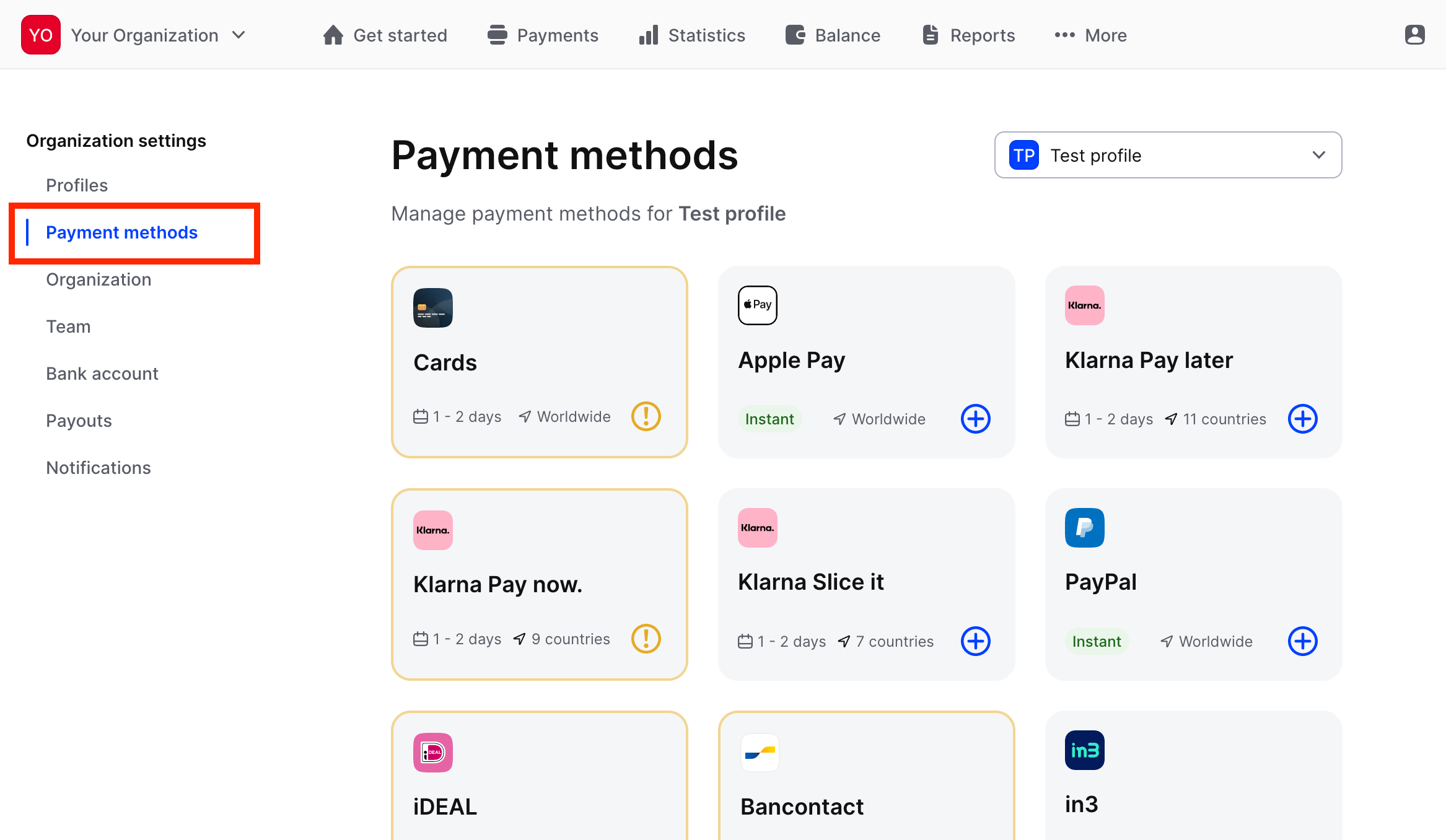 Then go to `Payment methods`: