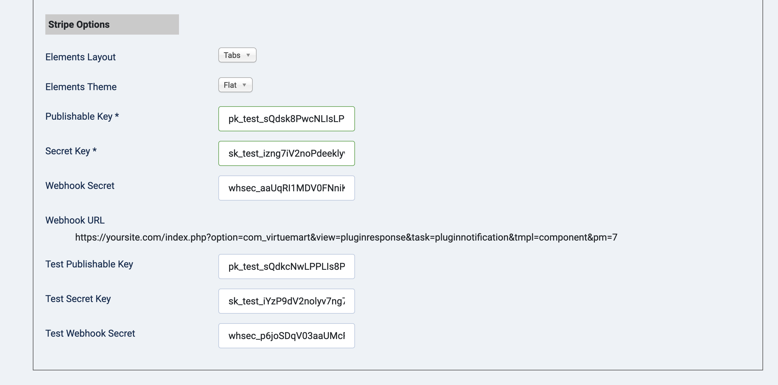 <figure><img src="https://norrnext.com/images/docs/vm-stripeco6.png" alt=""><figcaption><p>VirtueMart - Stripe payment method configuration</p></figcaption></figure>